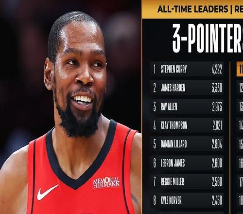 • 杜兰特生涯三分数超越杰森特里升历史第11,距第十卡特仅7记