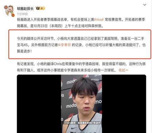 在这样的情况下,不管是开车去训练馆训练,还是外出吃饭或者娱乐。又或者带上女朋友去看场电影,其实都需要自己的交通工具。对于所有喜欢杨瀚森的球迷来说,看到小杨能够如此速度的融入当地的生活,应该会为他感到由衷的欣慰和开心。说实话,从最近一系列的细节可以感受到,杨瀚森和球队的队友相处还是相当愉快,而且教练组也很喜欢这名年轻球员,他本人的性格也比较活泼外向,很懂得自得其乐,这其实是非常难得的性格。再加上杨瀚森本身也具备一定的天赋,也愿意吃苦努力,我们相信他肯定可以在NBA闯出一片天。