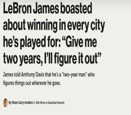 曝詹姆斯曾自称两年夺冠型球员豪言在骑士热火湖人都该拿5亿合同
