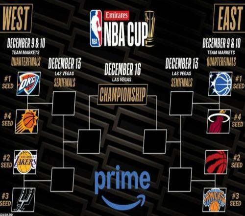 先看本届NBA杯,西部4强分别是雷霆、湖人、太阳、马刺,本届倒是很匹配,雷霆第1,湖人第2,马刺第4,太阳第6,西部4强又3支进入了NBA杯淘汰赛。