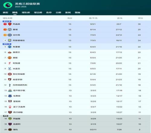 热闻17场不败,5分领跑英超!阿森纳11战平10人切尔西