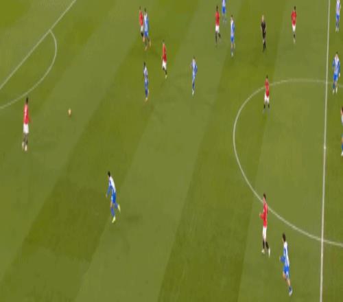 于是当布莱顿选择长传找双前锋的时候,曼联后场就变成了这样: